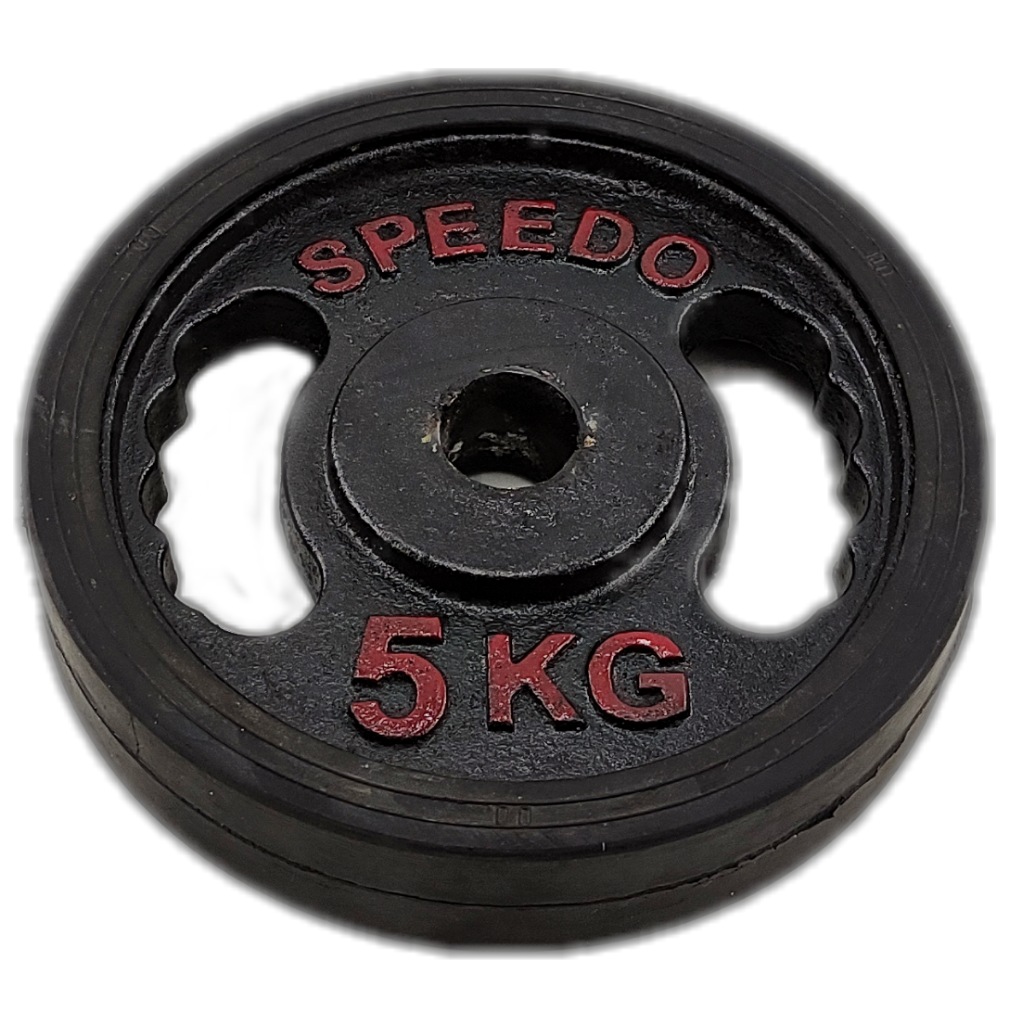 وزنۀ چدنی 5 کیلوگرمی دور لاستیک برند speedo قابل استفاده با دمبل و هالتر.
